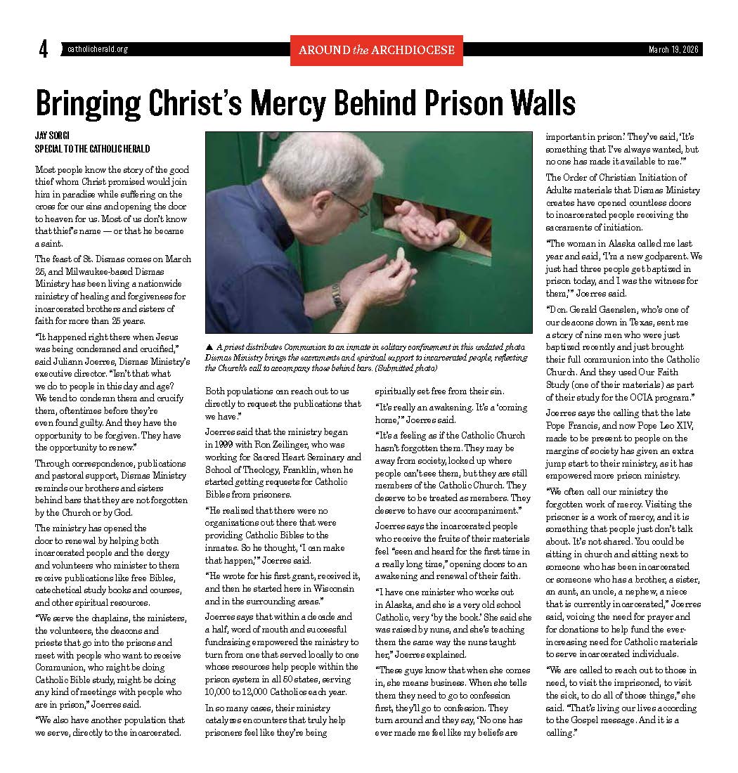 We are honored to be featured in the Catholic Herald newspaper for the work of Dismas Ministry and the mission we carry forward each day.